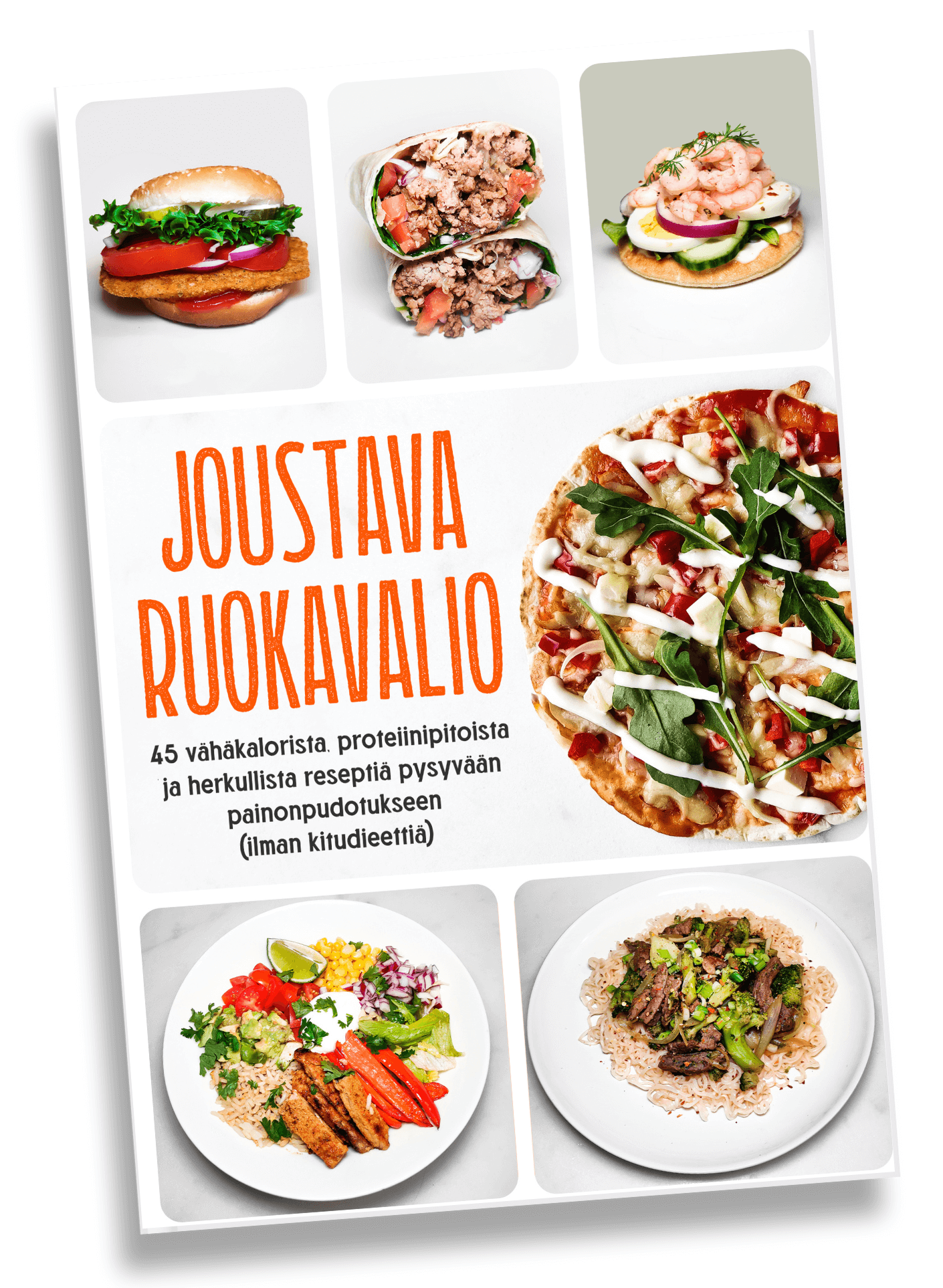 45 helppoa ja herkullista reseptiä: Reseptit ovat vähäkalorisempia ja proteiinipitoisempia versioita herkullisista ruoista ja ne on helppo valmistaa vaikka sinulla ei olisi aiempaa kokemusta ruoanlaitosta. Kaikki  reseptit sisältävät alle 500 kaloria, jotta sinun on helpompi seurata päivittäistä kalorimäärääsi.